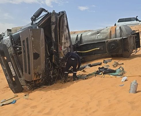 تدخلت مصالح الحماية المدنية على الساعة 09سا12د من أجل حادث انحراف و انقلاب شاحنة ذات صهريج على مستوى الطريق الوطني رقم 01، بلدية حاسي الفحل دائرة المنيعة