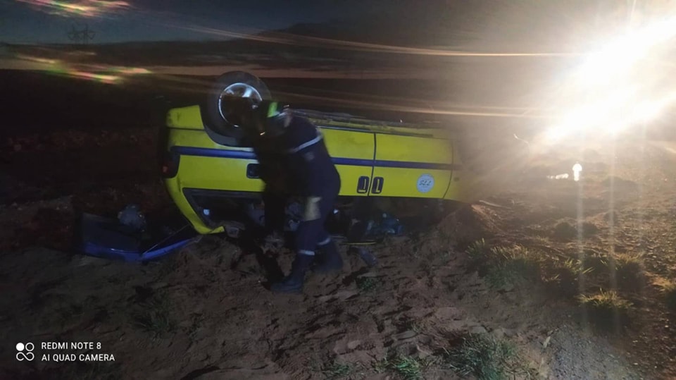 تدخلت مصالح الحماية المدنية على الساعة 05سا16د من أجل حادث انحراف و انقلاب سيارة ،بالطريق الوطني رقم 95، بلدية رجم دموش و دائرة رأس الماء