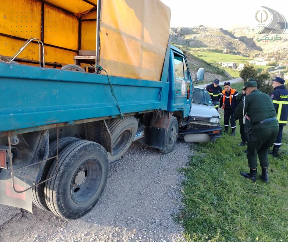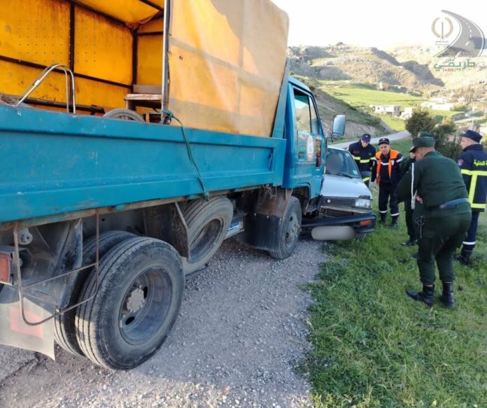 تدخلت مصالح الحماية المدنية على الساعة 07سا 08د من أجل حادث اصطدام بين سيارة و شاحنة بالمكان المسمى قرية راس الماء ، ببلدية بوحشانة ودائرة لخزارة