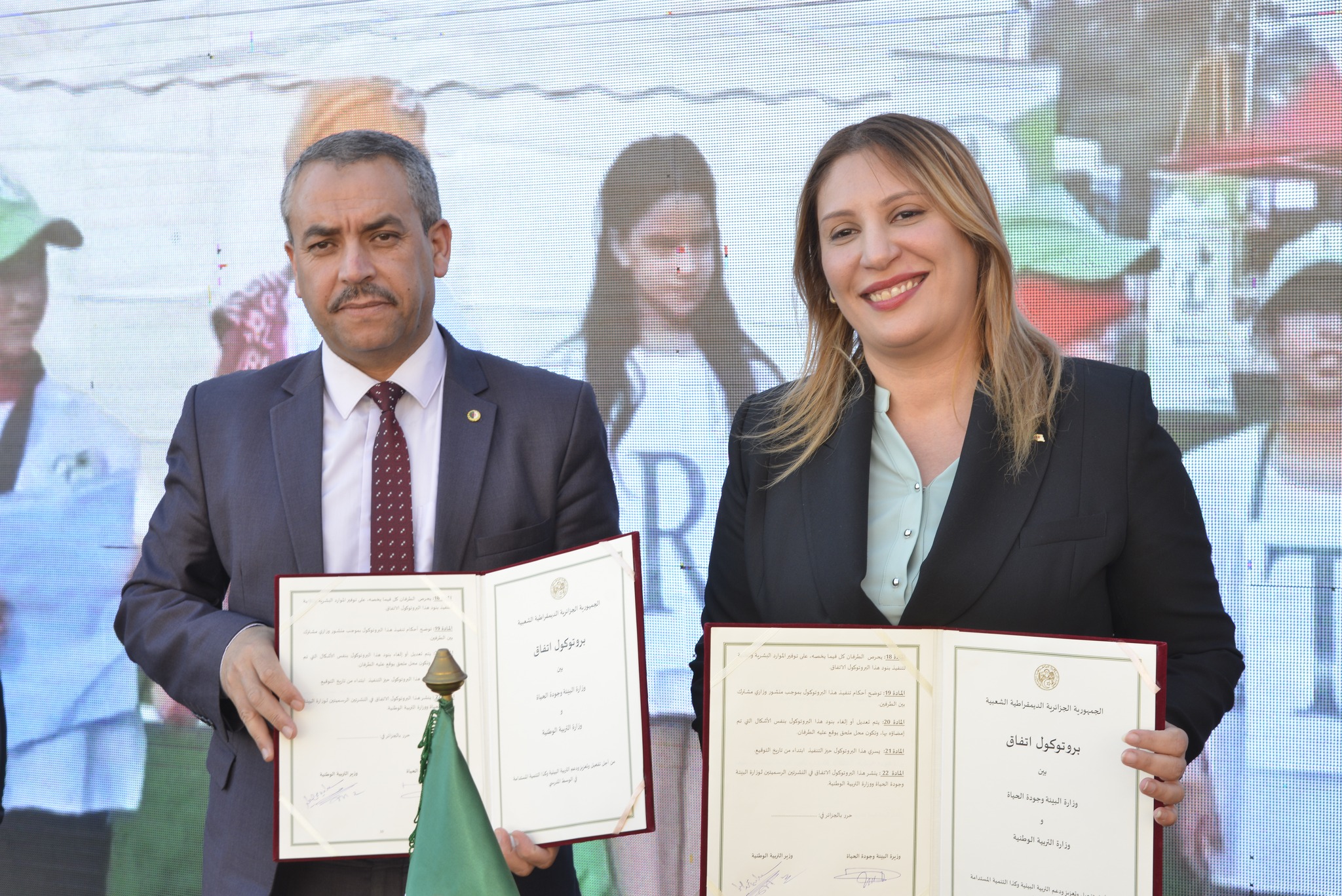 أشرف وزير التربية الوطنية، الدكتور محمد صغير سعداوي، بمعية وزيرة البيئة وجودة الحياة، السيدة نجيبة جيلالي، وبحضور وزير الشباب، المكلف بالمجلس الأعلى للشباب، السيد مصطفى حيداوي و المفوضة الوطنية لحماية الطفولة، السيدة مريم شرفي، و ممثلة صندوق الأمم المتحدة للطفولة (يونيسف) بالجزائر، السيدة كاترينا جوهانسون، إلى جانب ممثلين عن البرلمان بغرفتيه، وممثلي الهيئات المدنية والعسكرية، ورؤساء وممثلي عدد من الهيئات الدستورية والرسمية، ظهيرة يوم الثلاثاء 08 أفريل 2025، بمتوسطة مرزوق بن يوسف، المدعو سي علي، بسيدي عبد الله، غرب ولاية الجزائر، على إعطاء إشارة الانطلاق لحملة تجهيز 2500 ناديا بيئيا منصّبا بالمؤسسات التعليمية، وهذا بمناسبة التوقيع على بروتوكول تعاون ثنائي بين وزارة التربية الوطنية ووزارة البيئة وجودة الحياة، مع العلم أن نفس عملية التجهيز تمت في نفس اليوم وفي نفس التوقيت، على مستوى خمس مؤسسات تعليمية بخمس ولايات هي: أدرار، الجزائر العاصمة، معسكر، خنشلة والمنيعة.