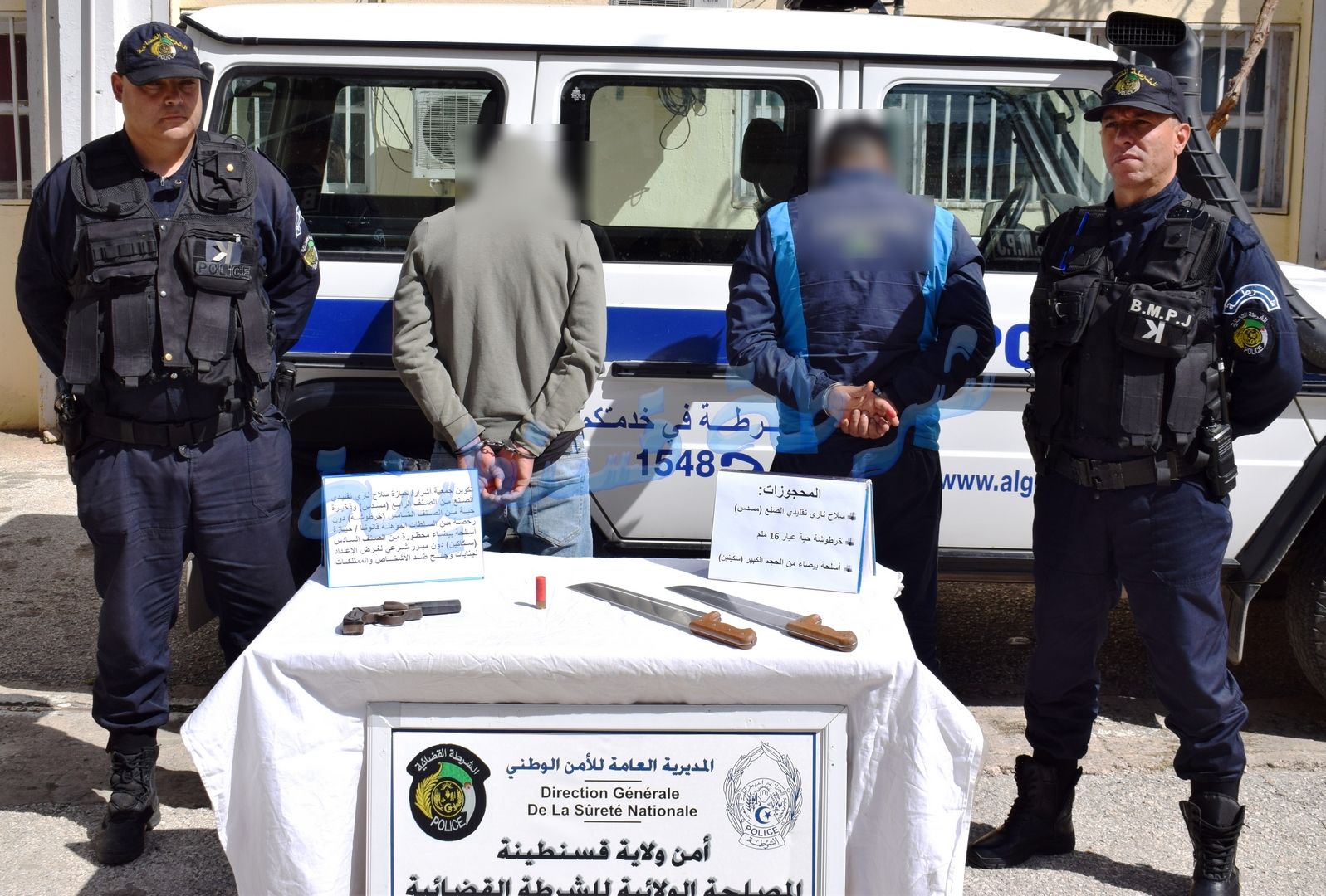 بعد محاولة يائسة للفرار من قبضة قوات الشرطة سيدي مبروك توقف شخصين من ذوي السوابق العدلية وتحجز بحوزتهما سلاح ناري تقليدي الصنع و أسلحة بيضاء محظورة