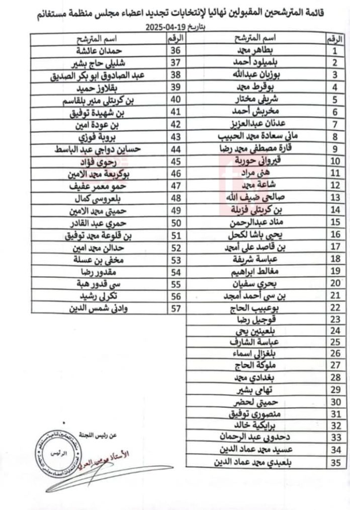 إجتمع مجلس منظمة المحامين لولاية مستغانم يوم 9 أفريل 2025 برئاسة نقيب المحامين الأستاذ بوقرط محمد، وبحضور جميع الأعضاء من أجل مناقشة ودراسة ملفات طلبات الترشح لانتخابات تجديد أعضاء مجلس المنظمة وكيفية سيران عملية الترشح المزمع إجرائها 19 أفريل 2025 ،والبالغ عددها 58 والتي أسفرت عن قبول57 طلبا و رفض طلبا واحدا.