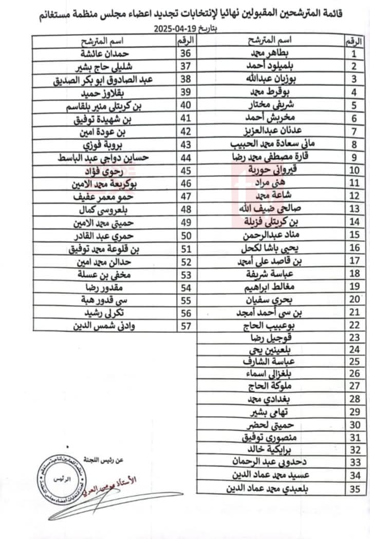 كما تم رفض طلب الترشح بخصوص الأستاذ بالأطرش نور الدين.