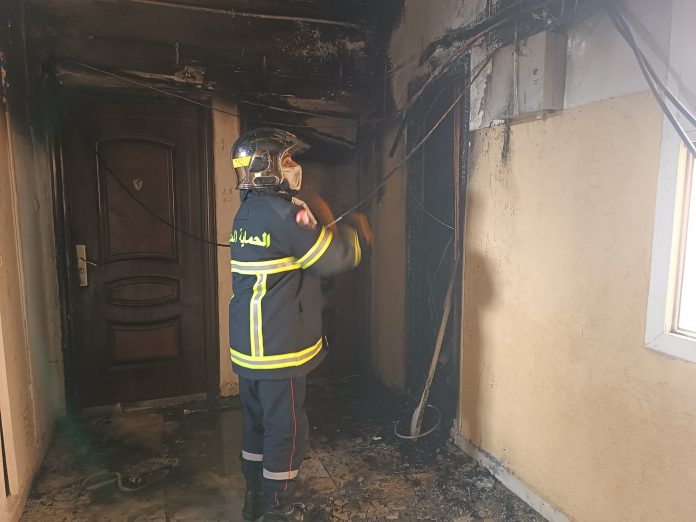 تدخلت مصالح الحماية المدنية على الساعة 12سا58د من أجل إخماد حريق شب في خزانة عدادات كهربائية بعمارة تتكون من (R+09) بحي 1500 مسكن بلدية ودائرة سيدي بلعباس