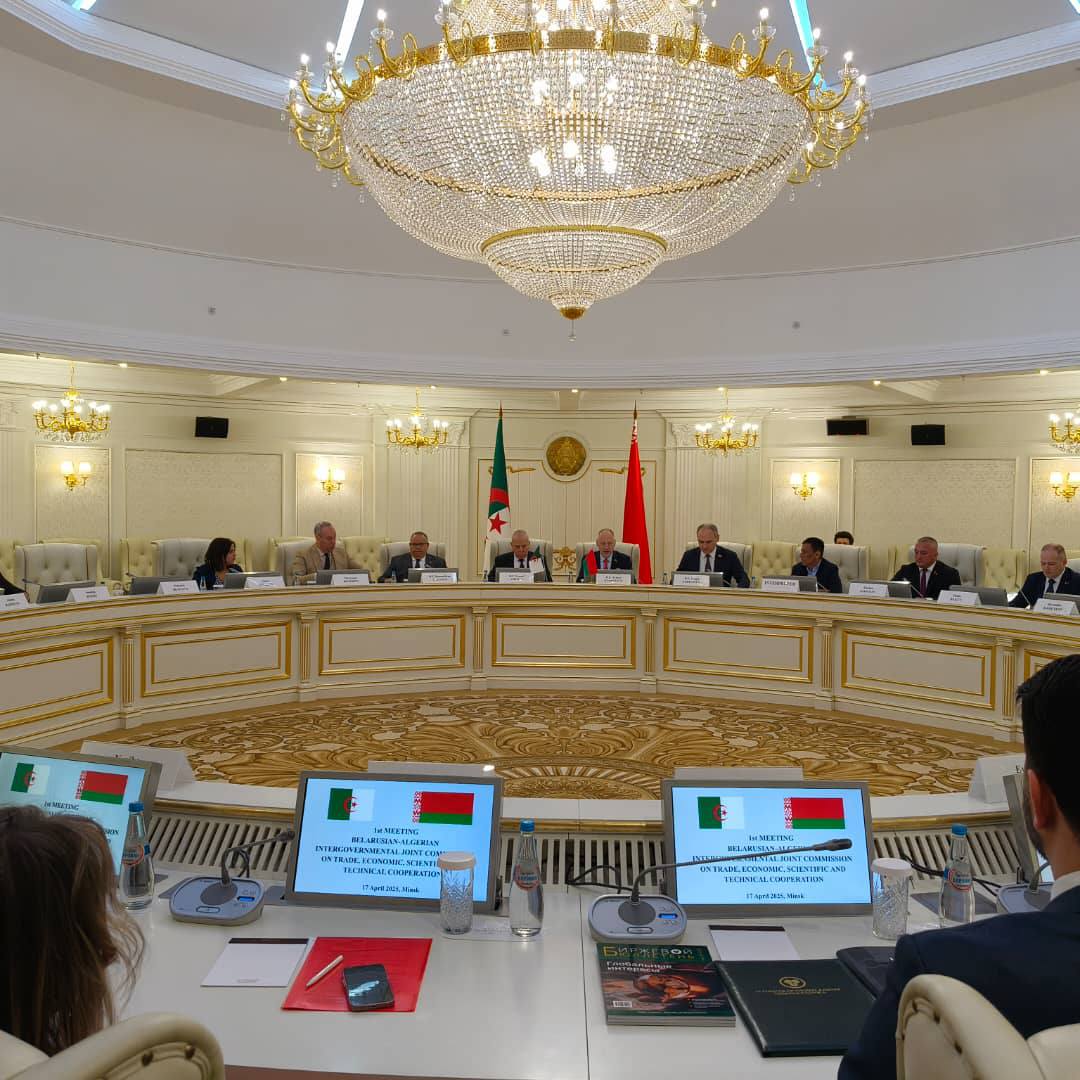 افتتحت اليوم الخميس 17 أفريل 2025 بعاصمة بيلاروسيا مينسك أشغال الدورة الأولى للجنة المشتركة الجزائرية البيلاروسية للتعاون التجاري والاقتصادي والعلمي والتقني، برئاسة السيد يوسف شرفة، وزير الفلاحة والتنمية الريفية والصيد البحري مناصفة مع وزير مكافحة الإحتكار وتنظيم التجارة البيلاروسي، السيد أرتر كاربوفييش، بحضور ممثلي عدة قطاعات من الجانبين.