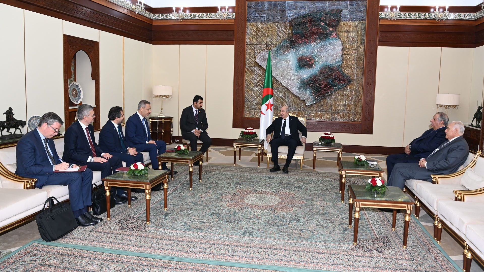 استقبل رئيس الجمهورية السيد عبد المجيد تبون، اليوم، السيد هاكان فيدان وزير الشؤون الخارجية للجمهورية التركية والوفد المرافق له.