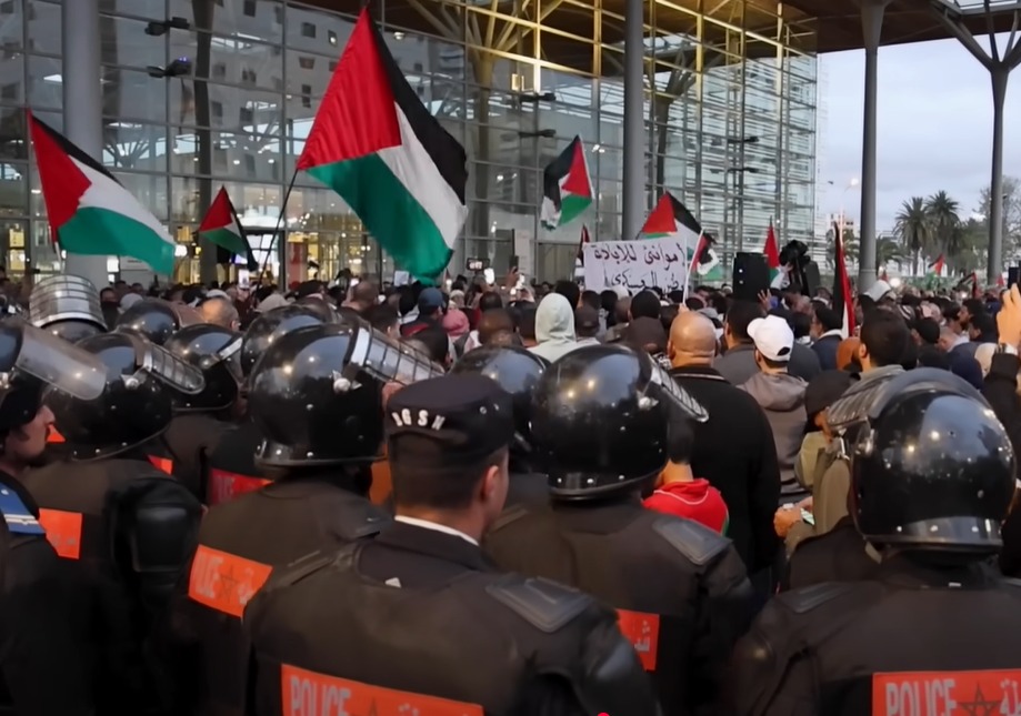 نددت جمعيات حقوقية مغربية بما تعرضت له المسيرتان السلميتان, أمس الأحد, بالدار البيضاء وطنجة من قمع وتطويق, حيث واجه المحتجون المطالبون بمنع رسو سفن محملة بعتاد عسكري ومتوجهة الى الكيان الصهيوني, مطاردات في الشوارع ومحاولات المنع من التظاهر, بهدف إسكات الأصوات الحرة الرافضة للتطبيع والتواطؤ مع الجرائم الصهيونية ضد الشعب الفلسطيني.