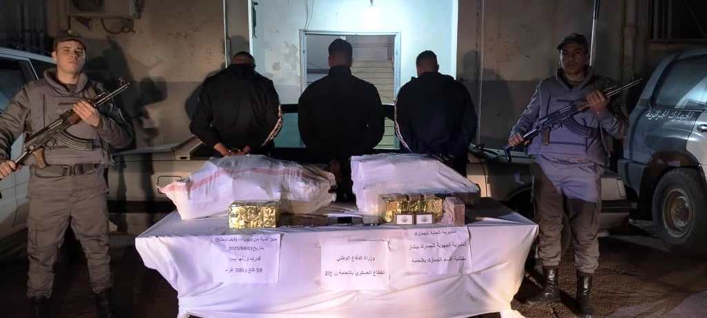 في إطار العمل الميداني المشترك، تمكنت فرق الجمارك التابعة لمفتشية أقسام الجمارك بالنعامة، بالتنسيق مع أفراد الجيش الوطني الشعبي، من إحباط محاولة تهريب كمية هامة من الكيف المعالج تُقدّر بـ59,5 كلغ، كانت مخبأة بإحكام داخل مركبتين سياحيتين.