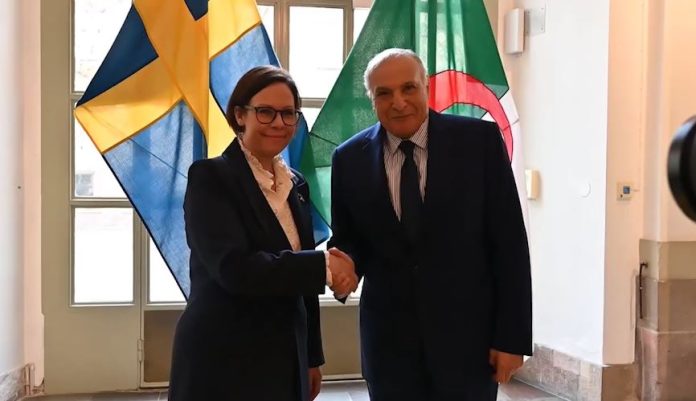في إطار الزيارة الرسمية التي يقوم بها إلى مملكة السويد، أجرى وزير الدولة، وزير الشؤون الخارجية والجالية الوطنية بالخارج والشؤون الإفريقية، السيّد أحمد عطاف، اليوم بستوكهولم، محادثات على انفراد مع وزيرة الشؤون الخارجية السويدية، السيدة ماريا مالمر ستينرغارد، أعقبتها جلسة عمل مُوسعة بمُشاركة أعضاء وفدي البلدين.