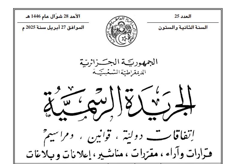 صدر في العدد 25 من الجريدة الرسمية للجمهورية الجزائرية بتاريخ 22 أبريل 2025، مرسوم رئاسي ينظم سلطة ضبط الصحافة المكتوبة والصحافة الإلكترونية، ويحدد مهام الأمين العام للسلطة وشروط ممارسته لمهامه، إضافة إلى نظام الرواتب والتعويضات المطبقة على رئيس السلطة وأعضائها وأمينها العام.