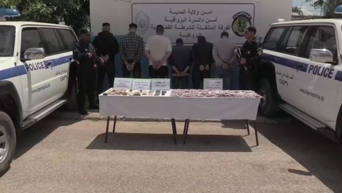 تمكنت الفرقة المتنقلة للشرطة القضائية بالبرواقية الأسبوع الفارط، من وضع حد لنشاط شبكة اجرامية تتكون من 06 أشخاص مشتبه فيهم في ترويج المؤثرات العقلية بمدينة البرواقية، العملية جائت نتيجة ورود معلومات مؤكدة لذات الفرقة مفادها اعتزام عناصر الشبكة ادخال كمية من السموم الى المدينة قصد ترويجها، استغلالا لهذه المعلومات و بالتنسيق الدائم و المستمر مع النيابة المختصة تم اعداد خطة أمنية محكمة بتشكيل عناصر بالزى الرسمي و المدني قصد ترصد و تتبع المشتبه فيهم و الاطاحة بهم، اسفرت العملية على توقيف ثلاثة (03) أشخاص على متن سيارتين، بعد عملية التفتيش تم ضبط كمية معتبرة من المؤثرات العقلية بداخل احداهما تقدر بـ 5250 قرص مهلوس من نوع بريغابالين، 1375000 دج من عائدات المتاجرة بالسموم، 06 هواتف نقالة استمرارا للتحقيق مع المشتبه فيهم تم التوصل الى باقي افراد الشبكة الثلاثة (03) الآخرين و توقيفهم.