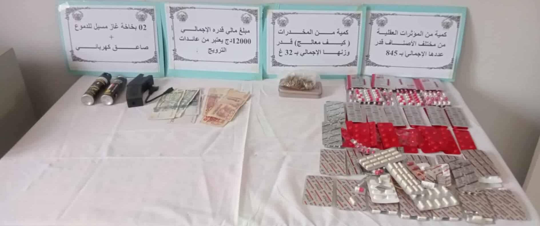 الفرقة المتنقلة للشرطة القضائية بريكة تطيح بمروّج مخدرات وتضبط بمسكنه كمية من المهلوسات وصاعق كهربائي