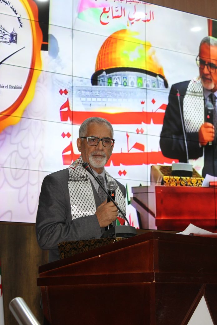 وفي هذا السياق تطرق الدكتور أبو بكر الصديق صابري رئيس اللجنة العلمية للملتقى الذي تجري أشغاله بقاعة المحاضرات الكبرى لجامعة البشير الإبراهيمي في مداخلته تحت عنوان “دور الدبلوماسية الجزائرية في الدفاع عن القضية الفلسطينية بالمحافل الدولية” إلى ما تبذله الجزائر من جهود جبارة من خلال مندوبها الدائم لدى الأمم المتحدة عمار بن جامع من أجل وقف حرب الإبادة ضد الشعب الفلسطيني.