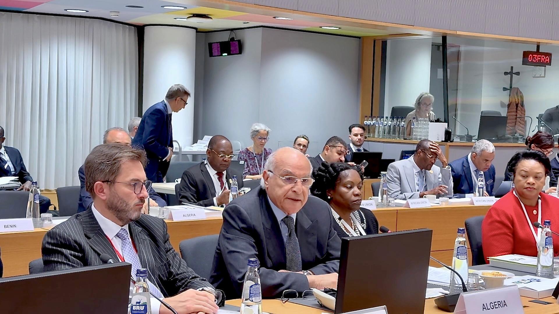 شارك وزير الدولة، وزير الشؤون الخارجية والجالية الوطنية بالخارج والشؤون الإفريقية، السيّد أحمد عطاف، اليوم ببروكسل، في أشغال الاجتماع الثالث لوزراء خارجية الاتحاد الإفريقي والاتحاد الأوروبي.