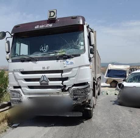 تدخلت مصالح الحماية المدنية على الساعة 11سا10د من أجل حادث اصطدام بين سيارتين وشاحنة بالطريق الوطني رقم 03، مدخل منطقة الضريح ببلدية ودائرة الخروب