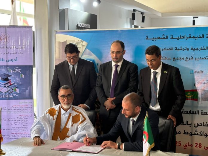 وجرت مراسم التوقيع على هامش الطبعة السابعة من معرض المنتجات الجزائرية بنواكشوط, المنظم من 22 إلى 28 مايو الجاري, من طرف من وزارة التجارة الخارجية وترقية الصادرات, بحضور سفير الجزائر لدى موريتانيا, أمين صيد, إلى جانب ممثلين عن وزارتي التجارة والسياحة, والخارجية الموريتانية.
