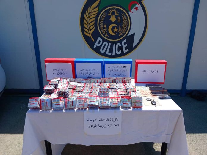 تمكنت قوات الشرطة بالفرقة المتنقلة للشرطة القضائية زريبة الوادي بأمن ولاية بسكرة من توقيف 03 اشخاص مع حجز كمية من المؤثرات العقلية قدرت بــ 13285 كبسولة من نوع بريغابالين 300 ملغ