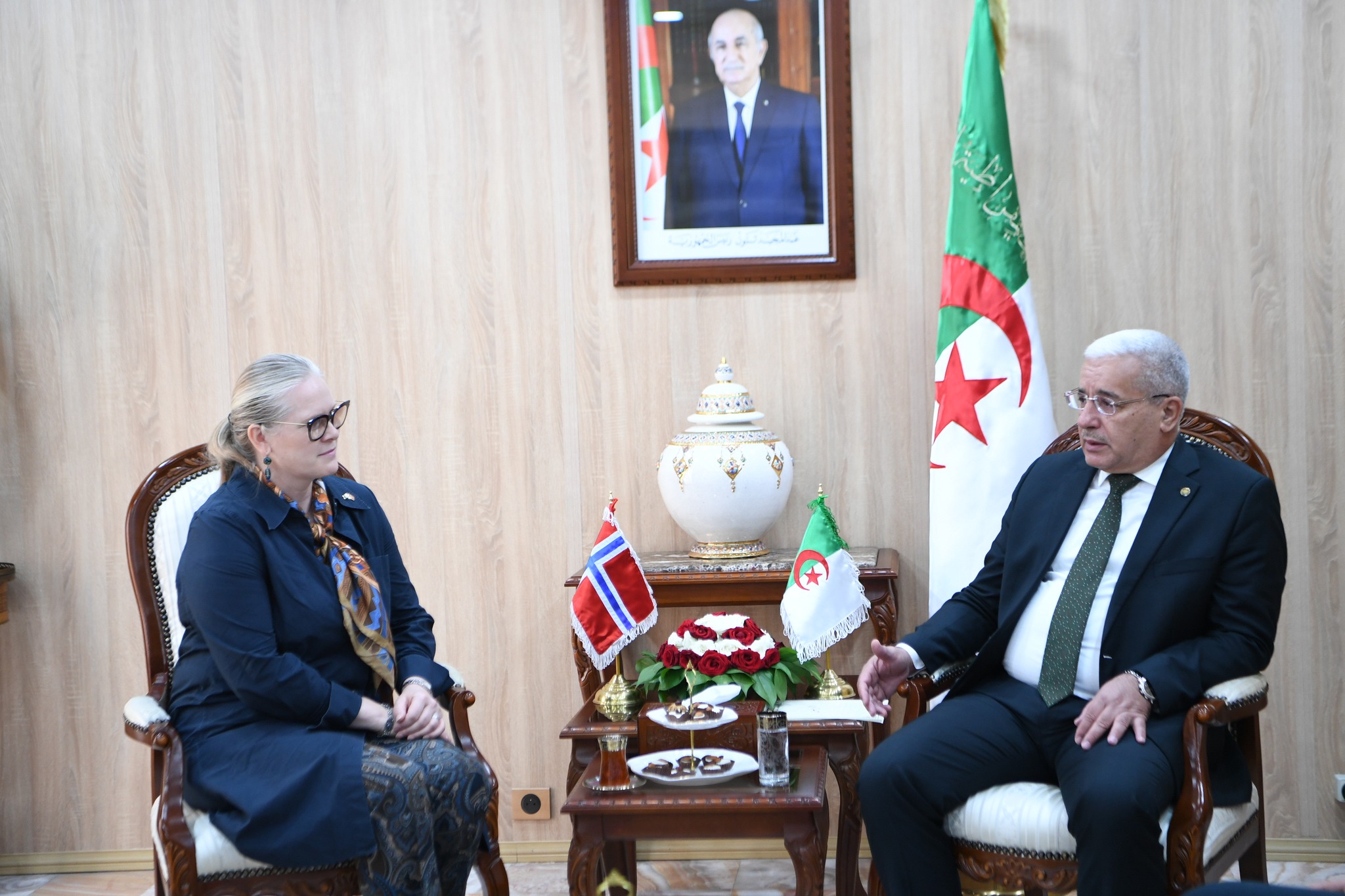 وقد تناول الطرفان خلال هذا اللقاء سبل تعزيز العلاقات الثنائية بين الجزائر ومملكة النرويج، لاسيما في المجالات الاقتصادية والطاقوية، مع التأكيد على أهمية دعم التعاون في مجالات التكنولوجيا وتحلية مياه البحر، وتكثيف التبادل الثقافي بين البلدين.