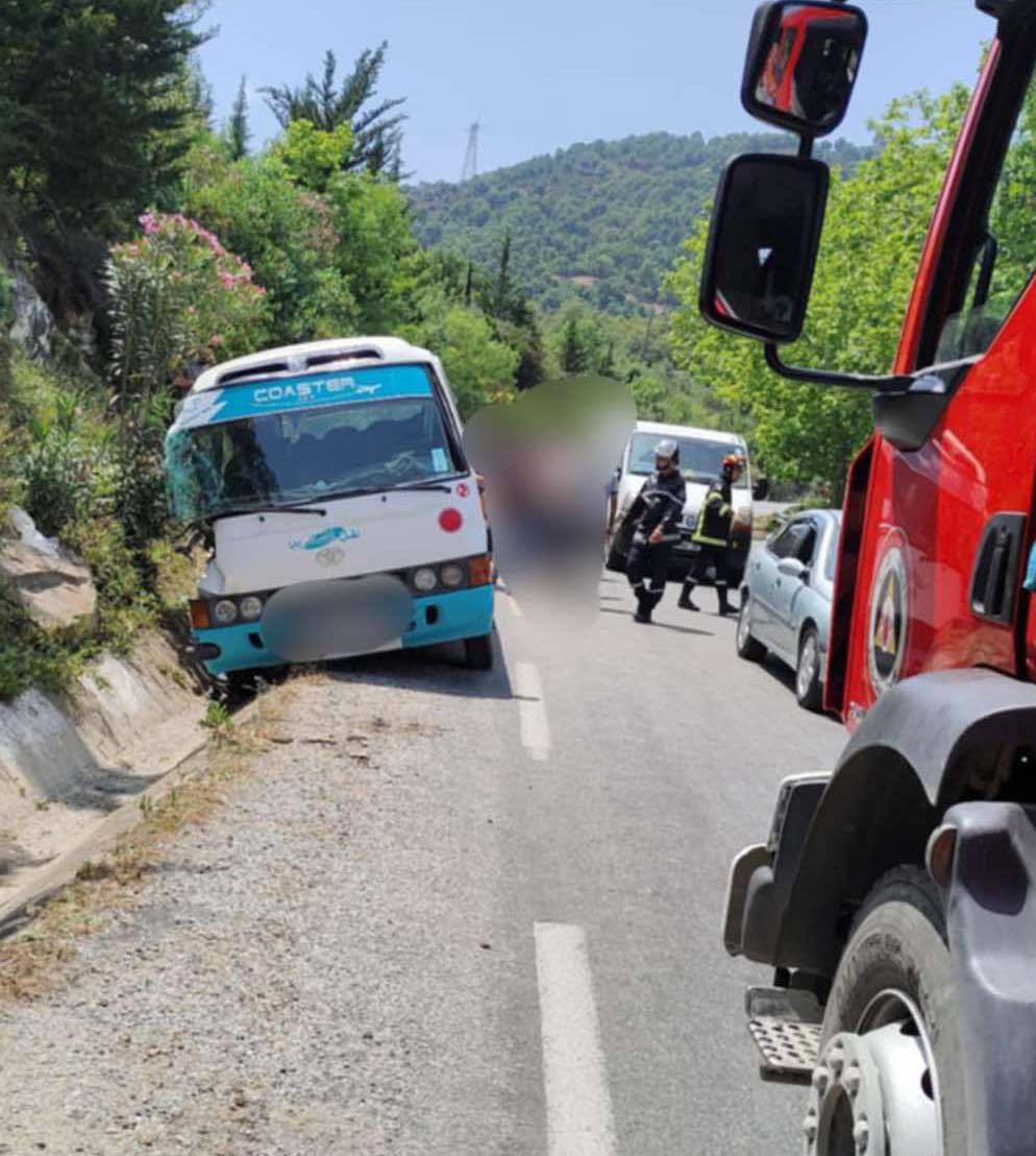 تدخلت مصالح الحماية المدنية على الساعة 13سا 29د من أجل حادث إصطدام بين سيارة و حافلة لنقل المسافرين على مستوى الطريق الوطني رقم 77 الطواجنة ، بلدية و دائرة تاكسنة