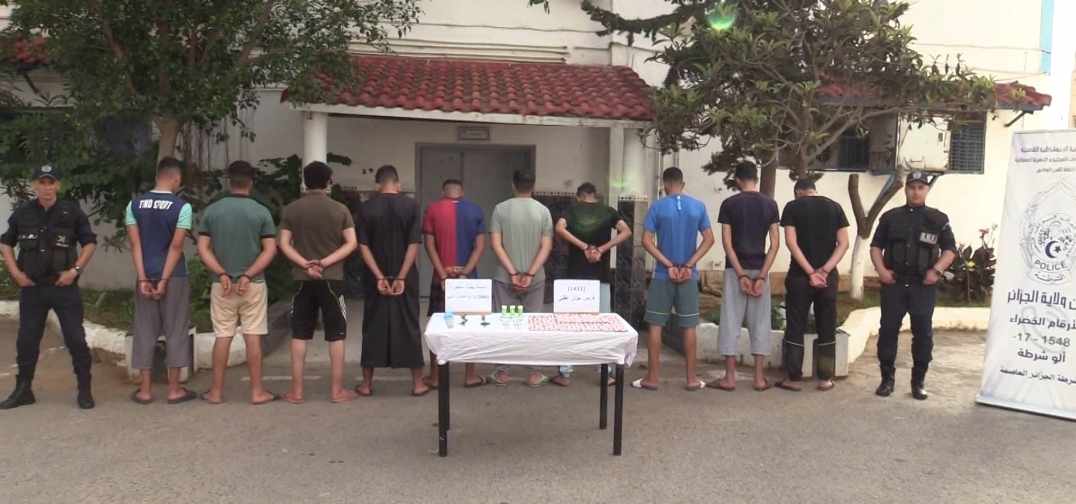تمكنت فرقة الشرطة القضائية لأمن المقاطعة الإدارية بئر مراد رايس مؤخراء من توقيف (10) أشخاص مسبوقين قضائيا، كانوا ينشطون ضمن عصابة أحياء خلقت الرعب في أوساط سكان عين النعجة، مع ضبط أزيد من ألف قرص مؤثر عقلي وأسلحة بيضاء محظورة .