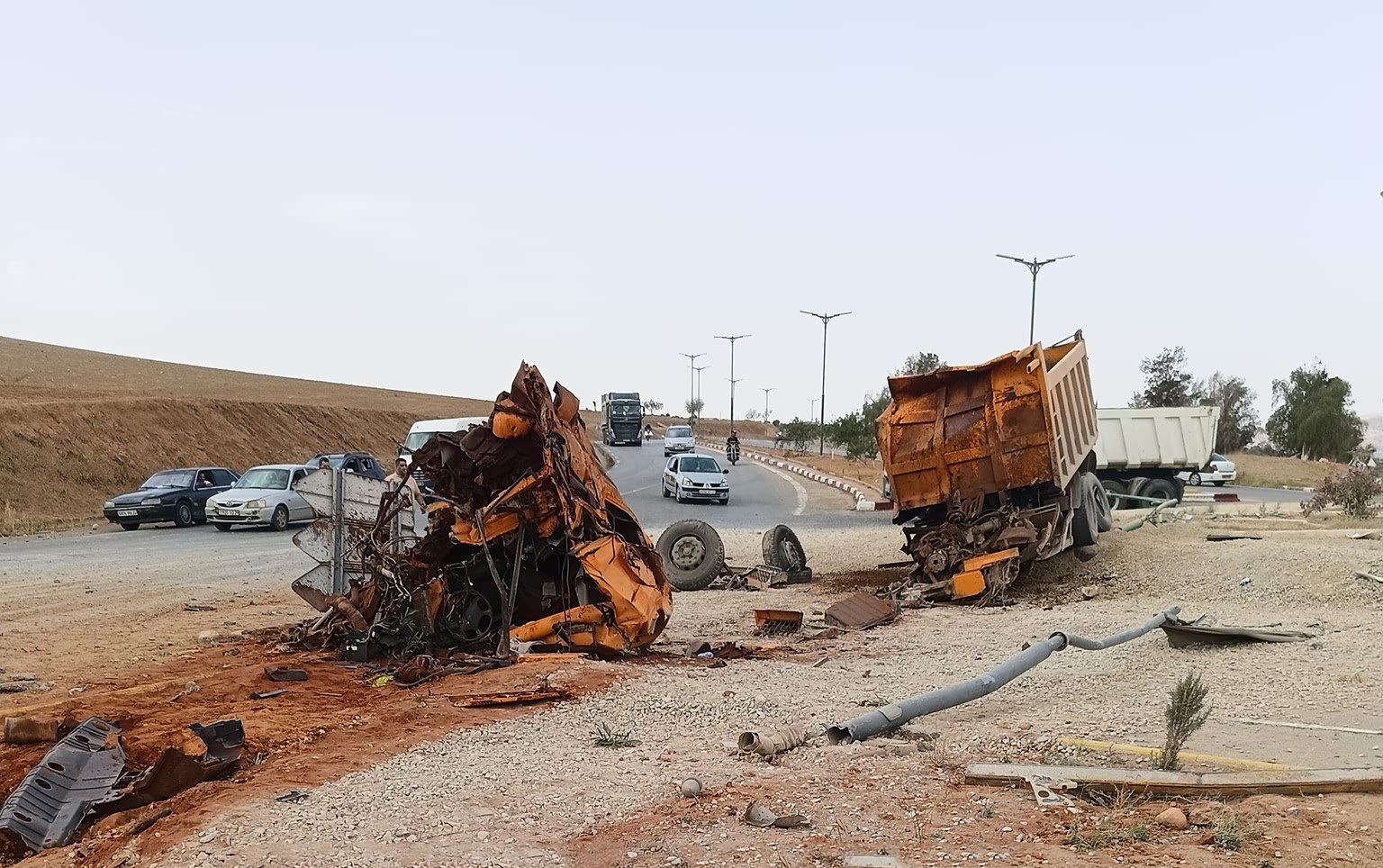 تدخلت إسعافات الحماية المدنية بدائرة بوحنيفية على الساعة 10 سا 20 د لحادث مرور بالطريق الوطني رقم 17 محور الدوران قرية الڨرارة ، تمثل الحادث في اصطدام ما بين شاحنتين.
