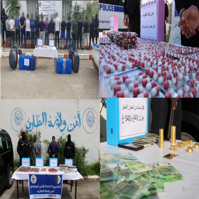 في اطار محاربة الجرائم بمختلف اشكالها خاصة منها الجرائم المنظمة و العابرة للحدود والجريمة الحضرية تمكنت مصالح الشرطة القضائية لأمن ولاية الطارف المختصة في هذا المجال خلال 5 أشهر من سنة 2025 من وضع حد لنشاط عدة شبكات اجرامية منظمة: