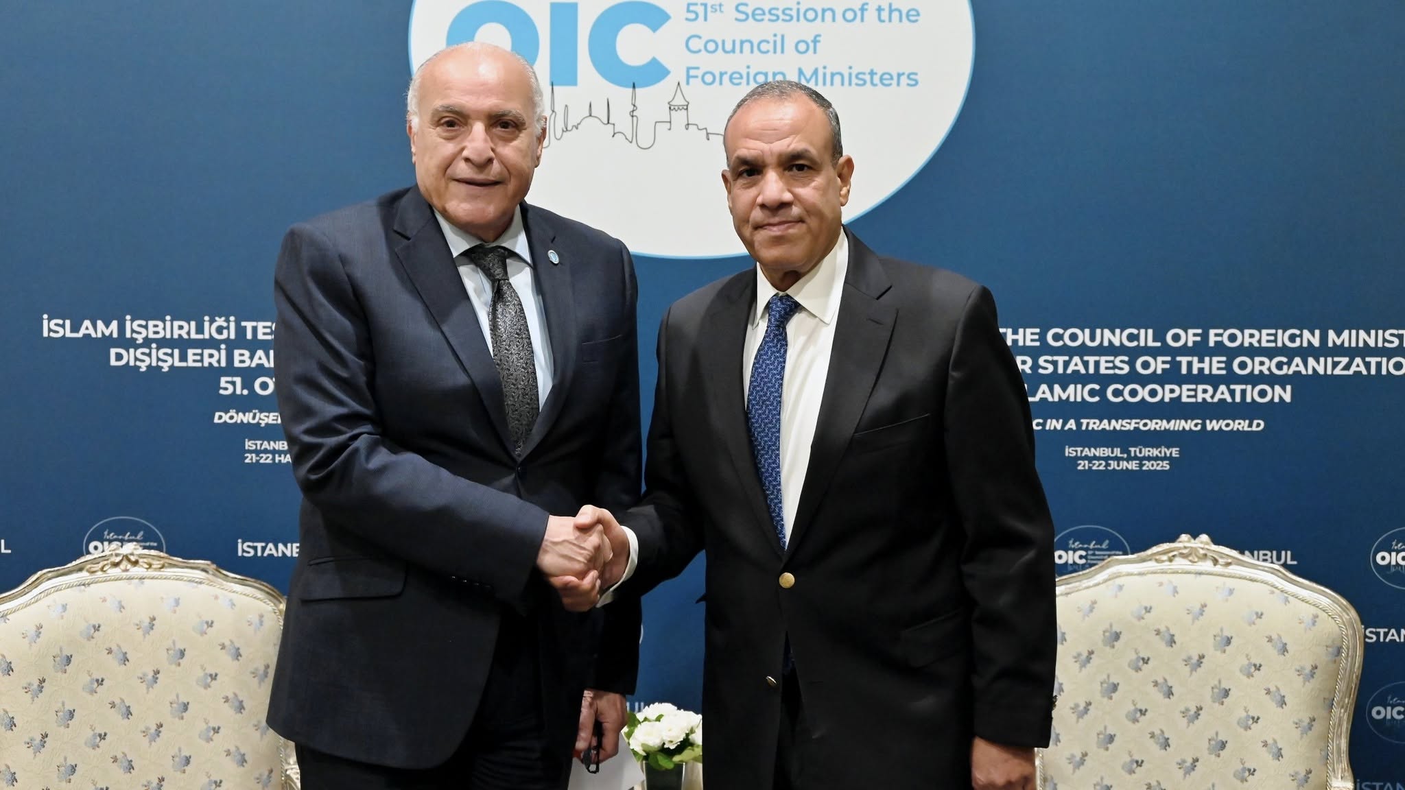 على هامش أشغال الدورة الحادية والخمسين لمجلس وزراء خارجية منظمة التعاون الإسلامي ، أجرى وزير الدولة، وزير الشؤون الخارجية والجالية الوطنية بالخارج والشؤون الإفريقية، السيّد أحمد عطاف، اليوم بإسطنبول، محادثات ثنائية مع وزير الخارجية والهجرة وشؤون المصريين بالخارج لجمهورية مصر العربية، السيّد بدر عبد العاطي.