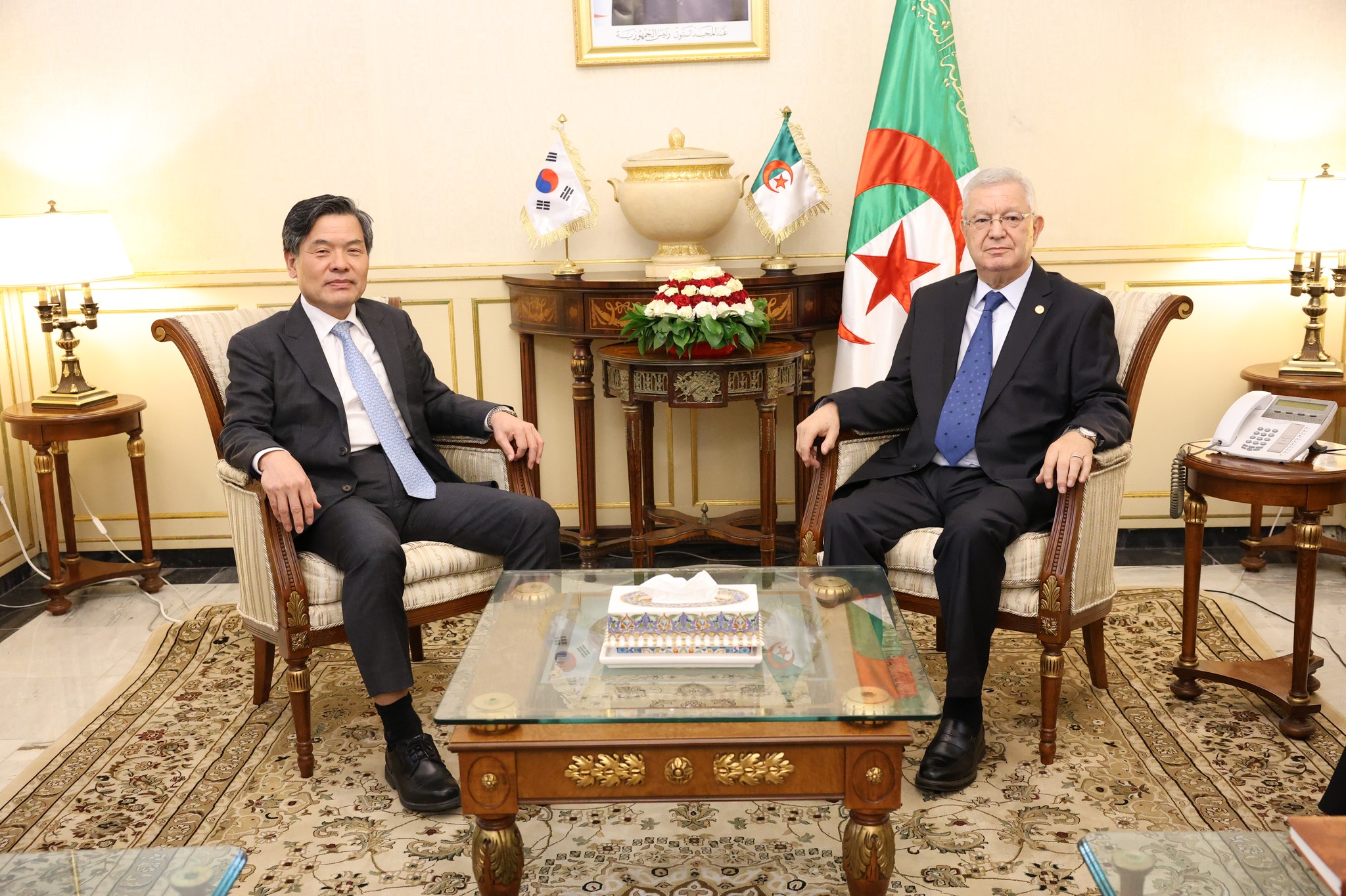 رئيس مجلس الأمة عبر عن اعتزاز الجزائر بالشراكة الاستراتيجية مع كوريا وهي الوحيدة لهذا البلد الصديق في إفريقيا، ورحب بسلاسة العلاقات الاقتصادية الجزائرية-الكورية، كما دعا إلى رفع مؤشراتها وتوسعتها نحو مجالات حيوية أخرى، وذلك في وجود بيئة استثمارية آمنة ومؤطرة تشريعيا ومؤسساتيا، مؤكدا أن الانتقال الاقتصادي الذي باشرته الجزائر نحو اقتصاد الابتكار والمعرفة والطاقات المتجددة، يعزز الشراكة الاستراتيجية الجزائرية-الكورية بمزيد من فرص التعاون المستدام.