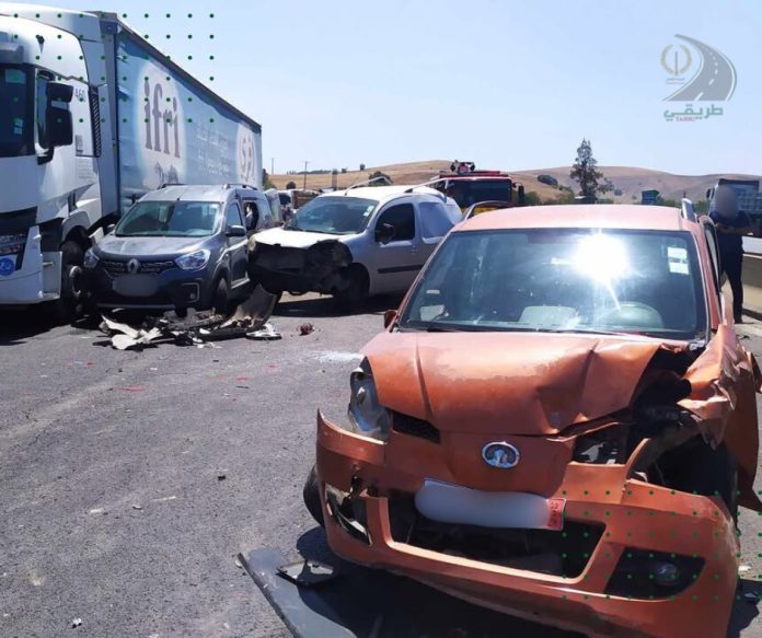 تدخلت مصالح الحماية المدنية على الساعة 14سا10د من أجل حادث إصطدام تسلسلي ل(06) سيارات و (02) شاحنتين على مستوى الطريق السيار شرق-غرب بقرب من محول بودفع ، بلدية و دائرة بومدفع