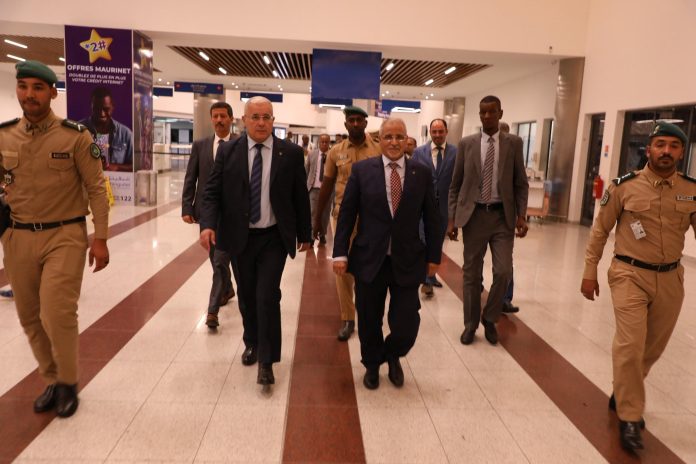 وكان في استقباله بمطار نواكشوط الدولي كل من السيد محمد بمب مكت، رئيس الجمعية الوطنية، وسفير الجزائر لدى موريتانيا.