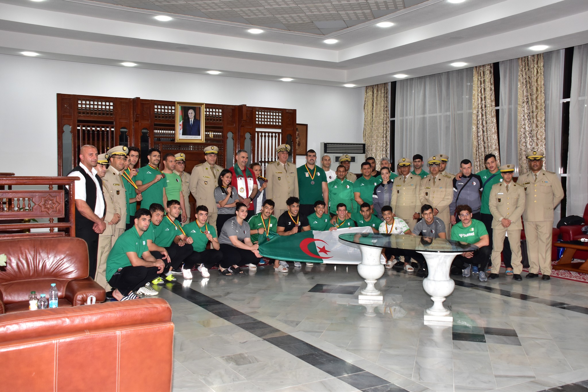 وكان في استقبال الوفد العميد جابو عبد الحق، رئيس مصلحة الرياضات العسكرية لدائرة الاستعمال والتحضير لأركان الجيش الوطني الشعبي، إلى جانب إطارات سامية من الجيش الوطني الشعبي.