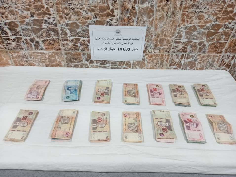 تمكنت مصالح الجمارك بالمعبر الحدودي العيون من ضبط مبلغ مالي يقدر بـ14.000 دينار تونسي، كان بحوزة أحد المسافرين أثناء محاولته مغادرة التراب الوطني، دون التصريح به، وذلك بعد إخضاعه لتفتيش دقيق.