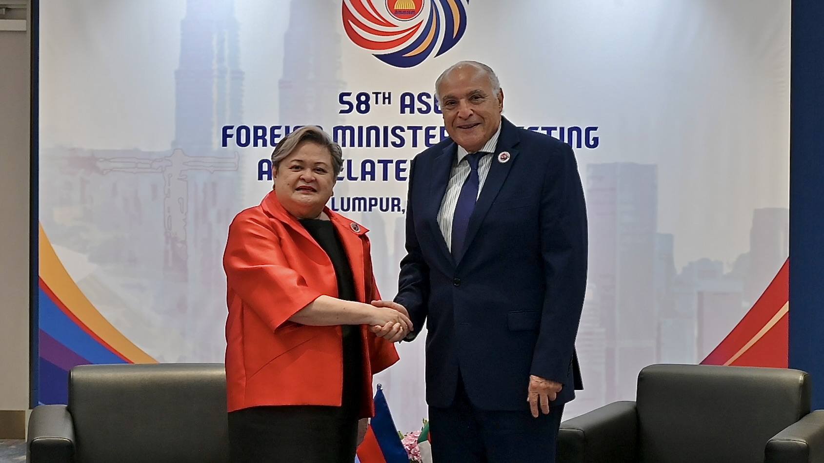 على هامش مشاركته في مراسم التوقيع على وثيقة انضمام الجزائر إلى معاهدة الصداقة والتعاون في جنوب شرق آسيا، أجرى وزير الدولة، وزير الشؤون الخارجية والجالية الوطنية بالخارج والشؤون الإفريقية، السيد أحمد عطاف، اليوم في كوالالمبور، محادثات ثنائية مع وزيرة الشؤون الخارجية لجمهورية الفلبين، السيدة ماريا تيريزا لازارو.