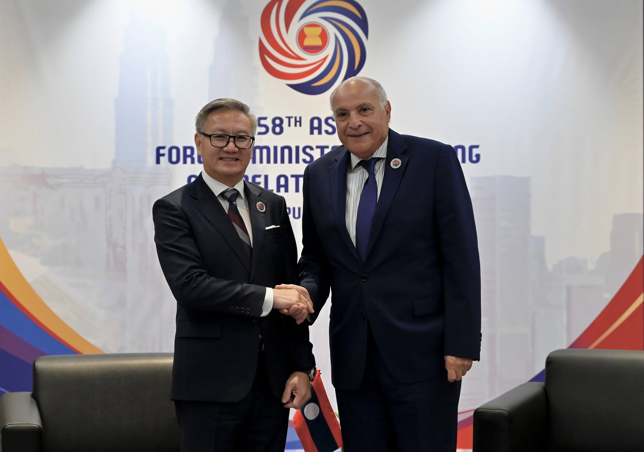 على هامش مشاركته في مراسم التوقيع على وثيقة انضمام الجزائر إلى معاهدة الصداقة والتعاون في جنوب شرق آسيا، أجرى وزير الدولة، وزير الشؤون الخارجية والجالية الوطنية بالخارج والشؤون الإفريقية، السيد أحمد عطاف، اليوم في كوالالمبور، محادثات ثنائية مع وزير شؤون خارجية جمهورية لاوس الديمقراطية الشعبية، السيد ثونغسافانه فومفيهان.