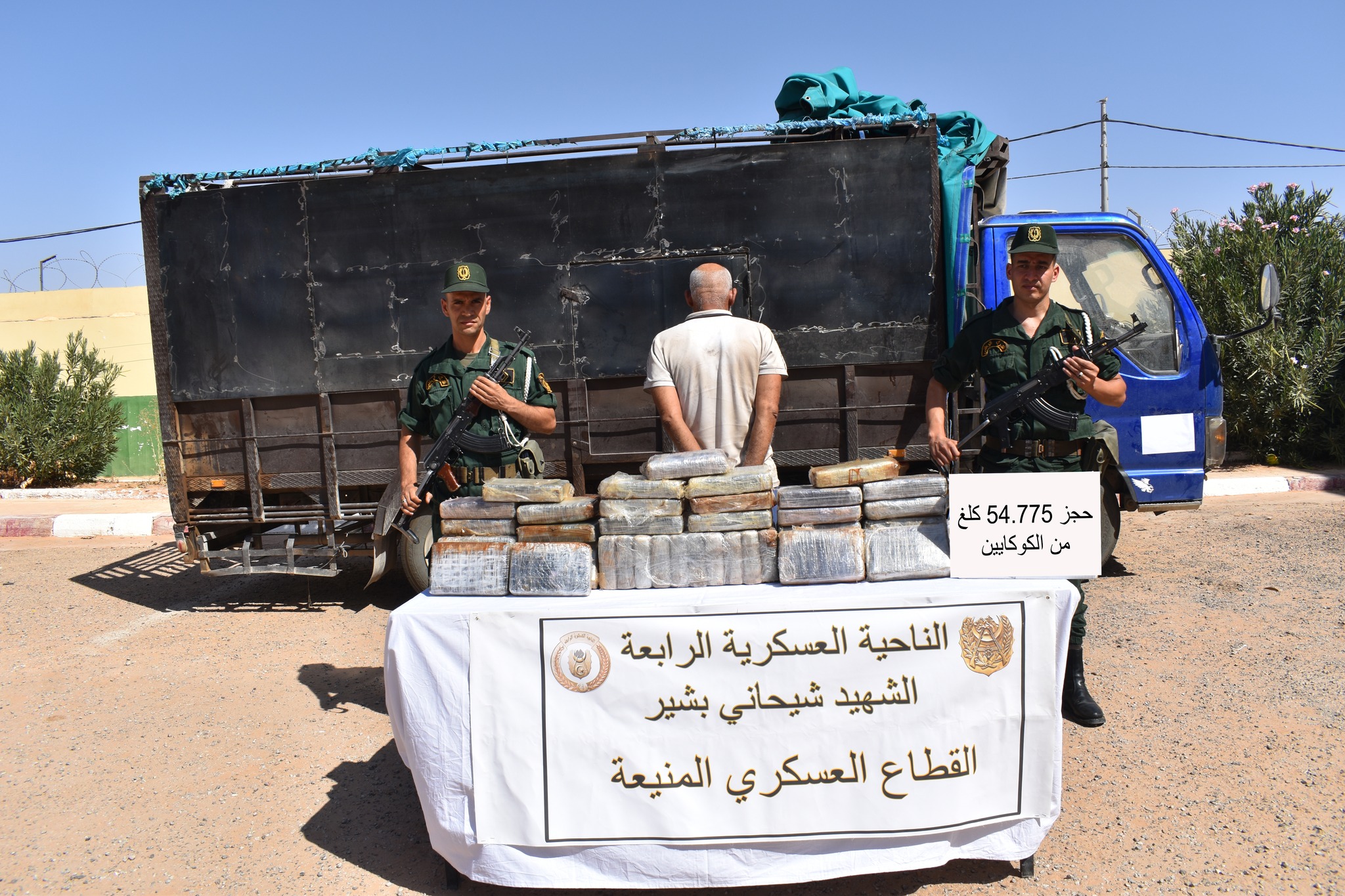 في إطار مكافحة الجريمة المنظمة، أوقفت مفارز مشتركة للجيش الوطني الشعبي، بالتنسيق مع مختلف مصالح الأمن، خلال الفترة الممتدة من 9 إلى 16 جويلية 2025، (43) تاجر مخدرات، وأحبطت محاولات إدخال (3) قناطير و(93) كيلوغرامًا من الكيف المعالج عبر الحدود الغربية مع المغرب. كما تم حجز (54.77) كيلوغرامًا من مادة الكوكايين على مستوى الناحية العسكرية الرابعة، و(320.430) قرصًا مهلوسًا خلال عمليات متفرقة عبر النواحي العسكرية.