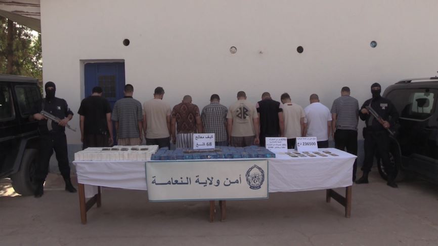 في إطار الجهود المستمرة التي تبذلها مصالح الأمن الوطني لمكافحة الجريمة المنظمة، لاسيما تلك المرتبطة بالإتجار غير المشروع بالمخدرات، تمكنت فرقة البحث والتدخل (BRI) التابعة لأمن ولاية النعامة، خلال الأسبوع المنصرم، من تفكيك شبكة إجرامية دولية متخصصة في تهريب وترويج المخدرات، وحجز 68 كلغ من الكيف المعالج قادمة من المغرب، مع توقيف 10 أشخاص من عناصرها.