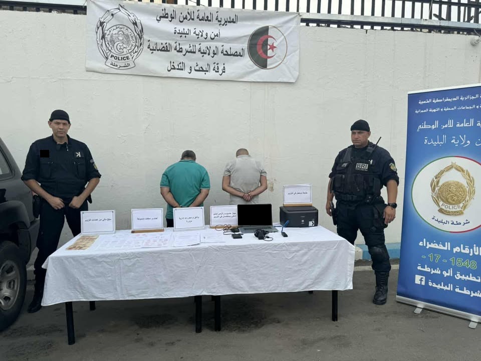 تمكنت فرقة البحث والتدخل بالمصلحة الولائية للشرطة القضائية من توقيف شخصين يبلغان من العمر 37 و54 سنة، مسبوقين قضائياً وينحدران من ولاية البليدة، على خلفية قضية تزوير واستعمال المزور في محررات رسمية وإدارية.