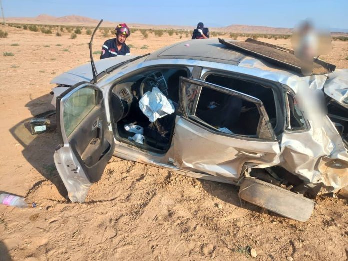 الحادث تمثل في انحراف وانقلاب سيارة سياحية، ما أسفر عن وفاة رجل يبلغ من العمر 63 سنة، حيث تم تحويل جثته إلى مصلحة حفظ الجثث، فيما أصيب مرافقه البالغ 57 سنة بجروح خطيرة وكان في حالة فقدان للوعي.
