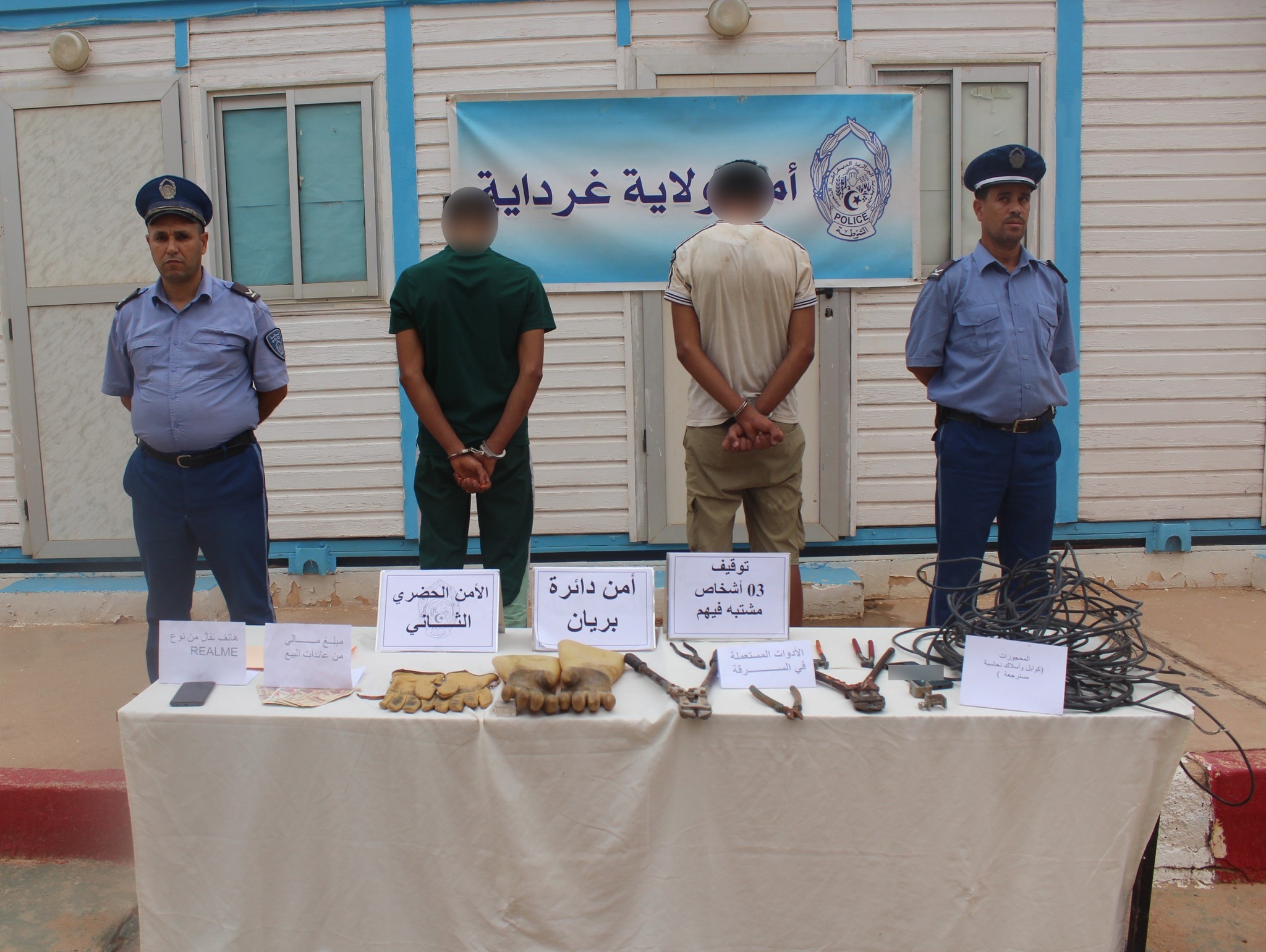 تمكنت قوات الشرطة بأمن دائرة بريان من الإطاحة بشبكة إجرامية متخصصة في سرقة الكوابل النحاسية، حيث تم توقيف ثلاثة (03) أشخاص مشتبه فيهم، مع حجز المعدات المستعملة في عمليات السرقة واسترجاع كمية معتبرة من الكوابل المسروقة.