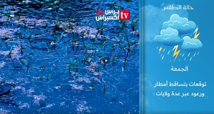 أفادت مصالح الأرصاد الجوية بتساقط أمطار معتبرة على ولايات: تبسة، سوق أهراس، خنشلة، أم البواقي، باتنة، سطيف، إليزي، عين صالح، تندوف، أدرار، برج باجي مختار، عين قزام وتمنراست، مع توقع تسجيل كميات متفاوتة خلال الساعات القادمة.
