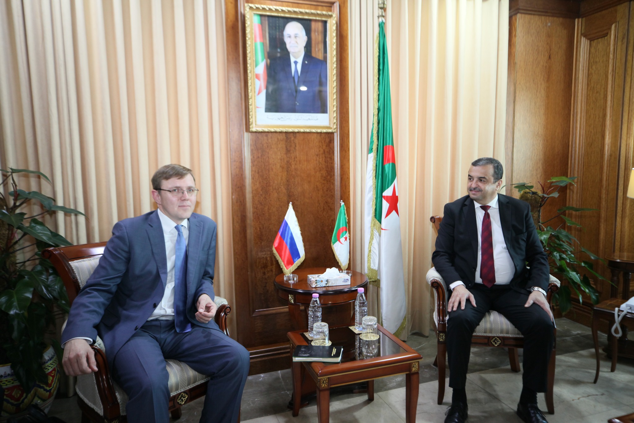 استقبل وزير الدولة، وزير الطاقة والمناجم والطاقات المتجددة، السيد محمد عرقاب، يوم الاثنين 8 سبتمبر 2025 بمقر الوزارة، نائب وزير الطاقة الروسي، السيد رومان مارشافين، والوفد المرافق له، في إطار مشاركته في فعاليات الطبعة الرابعة للمعرض الإفريقي للتجارة البينية 2025 المنعقد بالجزائر العاصمة.