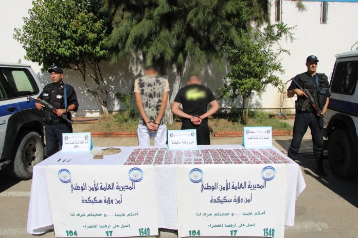 العملية جاءت بعد استغلال معلومات حول استغلال مدخل إحدى العمارات بمدينة سكيكدة كمكان لترويج المخدرات والمؤثرات العقلية. وبعد التحريات الميدانية، جرى توقيف أحد المشتبه فيهما متلبساً وبحوزته 150 كبسولة من دواء بريغابالين 300 ملغ أجنبي المنشأ.