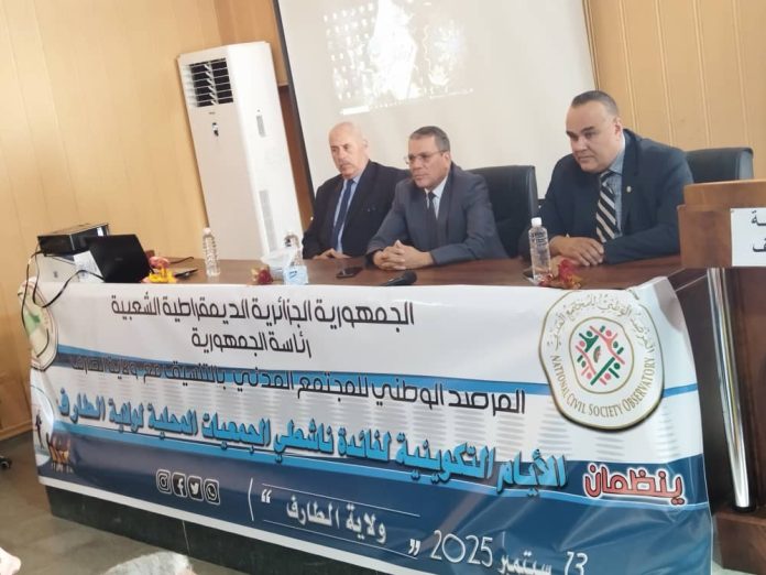 أشرف الأمين العام لولاية الطارف، مرفوقاً بممثل عن المجلس الشعبي الولائي، على إعطاء إشارة انطلاق فعاليات الأيام التكوينية الموجهة لناشطي الجمعيات المحلية، المنظمة من قبل المرصد الوطني للمجتمع المدني بالتنسيق مع مصالح الولاية، وذلك على مستوى المعهد الوطني المتخصص عمارة بوڨلاز.