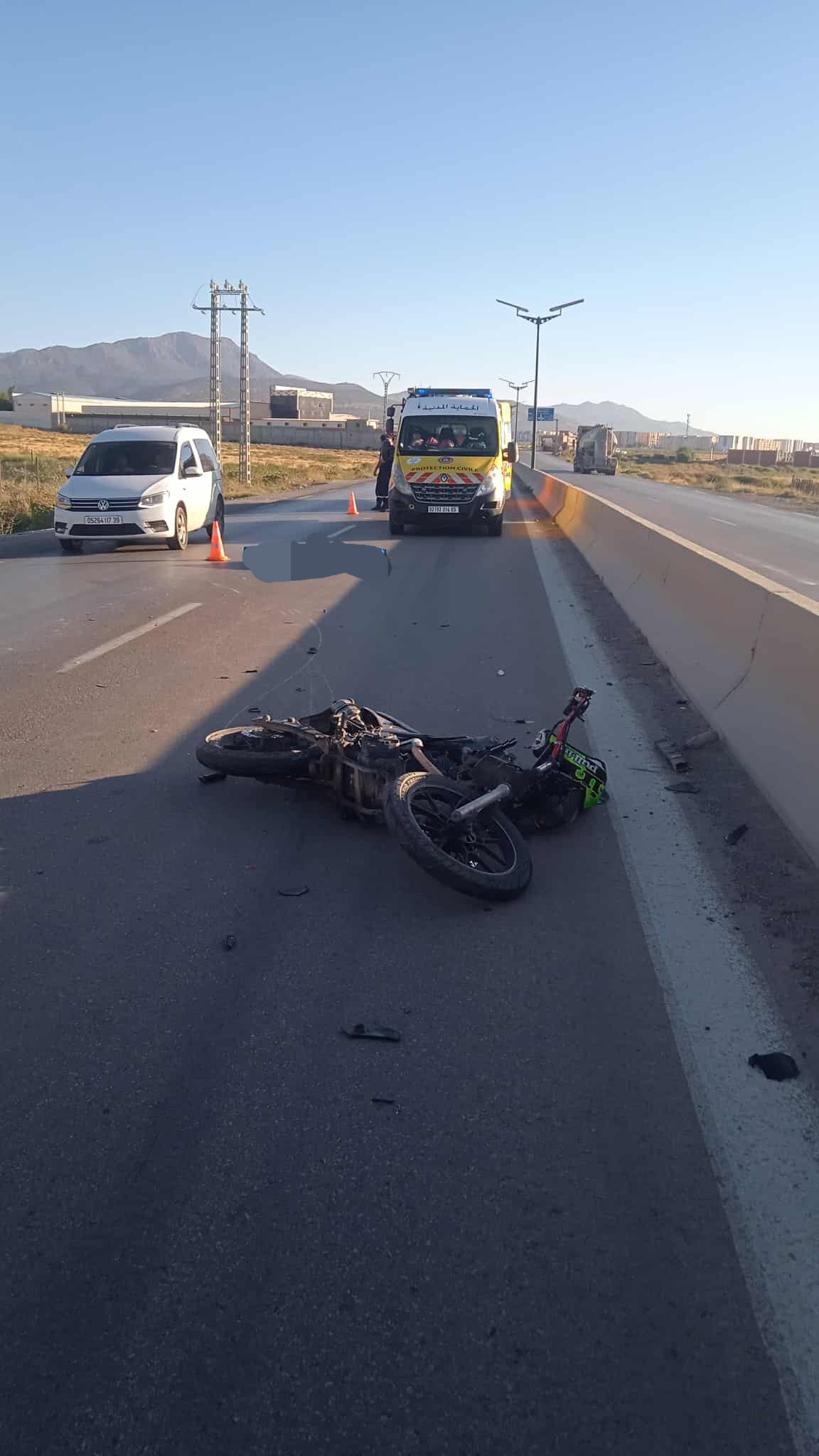 📌 الحادث تمثل في اصطدام شاحنة بدراجة نارية، وأسفر للأسف عن وفاة شاب يبلغ من العمر 28 سنة.