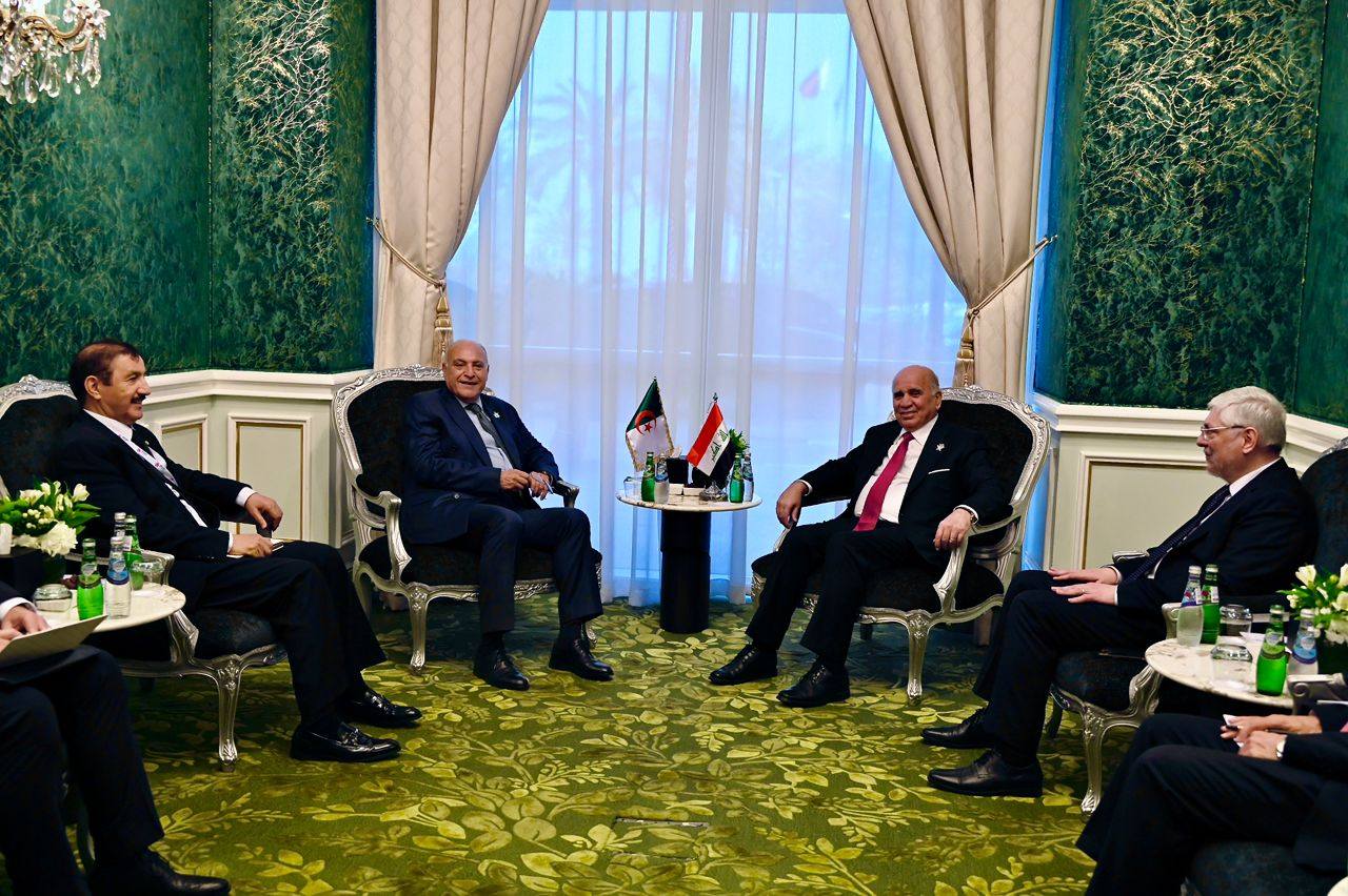 أجرى وزير الدولة، وزير الشؤون الخارجية والجالية الوطنية بالخارج والشؤون الإفريقية، السيد أحمد عطاف، اليوم بالدوحة، محادثات ثنائية مع نائب رئيس مجلس الوزراء ووزير خارجية جمهورية العراق الشقيقة، السيد فؤاد حسين، وذلك قبيل افتتاح أشغال القمة العربية الإسلامية الطارئة.