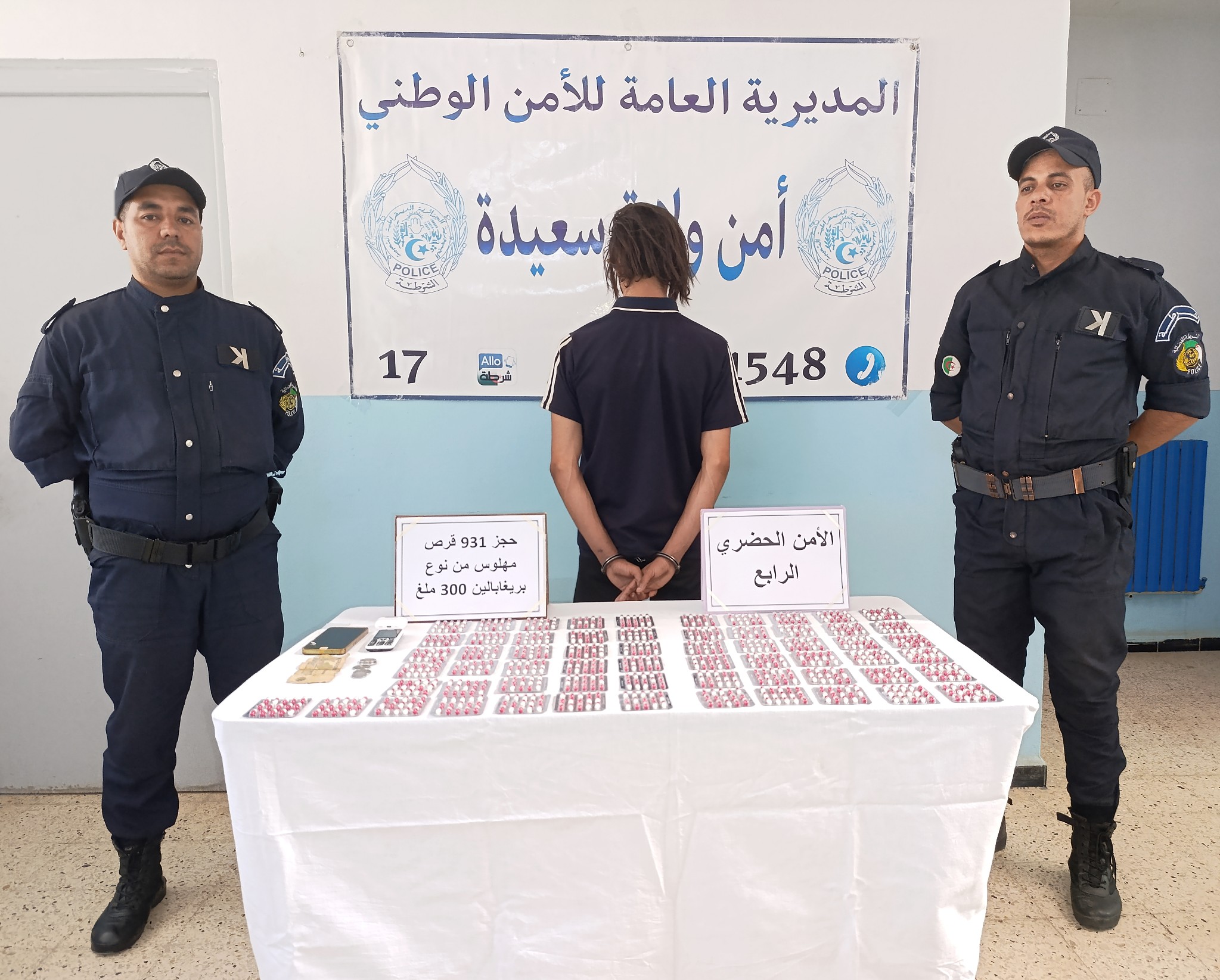 تمكّن عناصر الشرطة القضائية للأمن الحضري الرابع بأمن ولاية سعيدة، في إطار مكافحة الجريمة بشتى أنواعها، من توقيف شخص وضبط 931 قرصاً مهلوساً من نوع بريغابالين 300 ملغ.