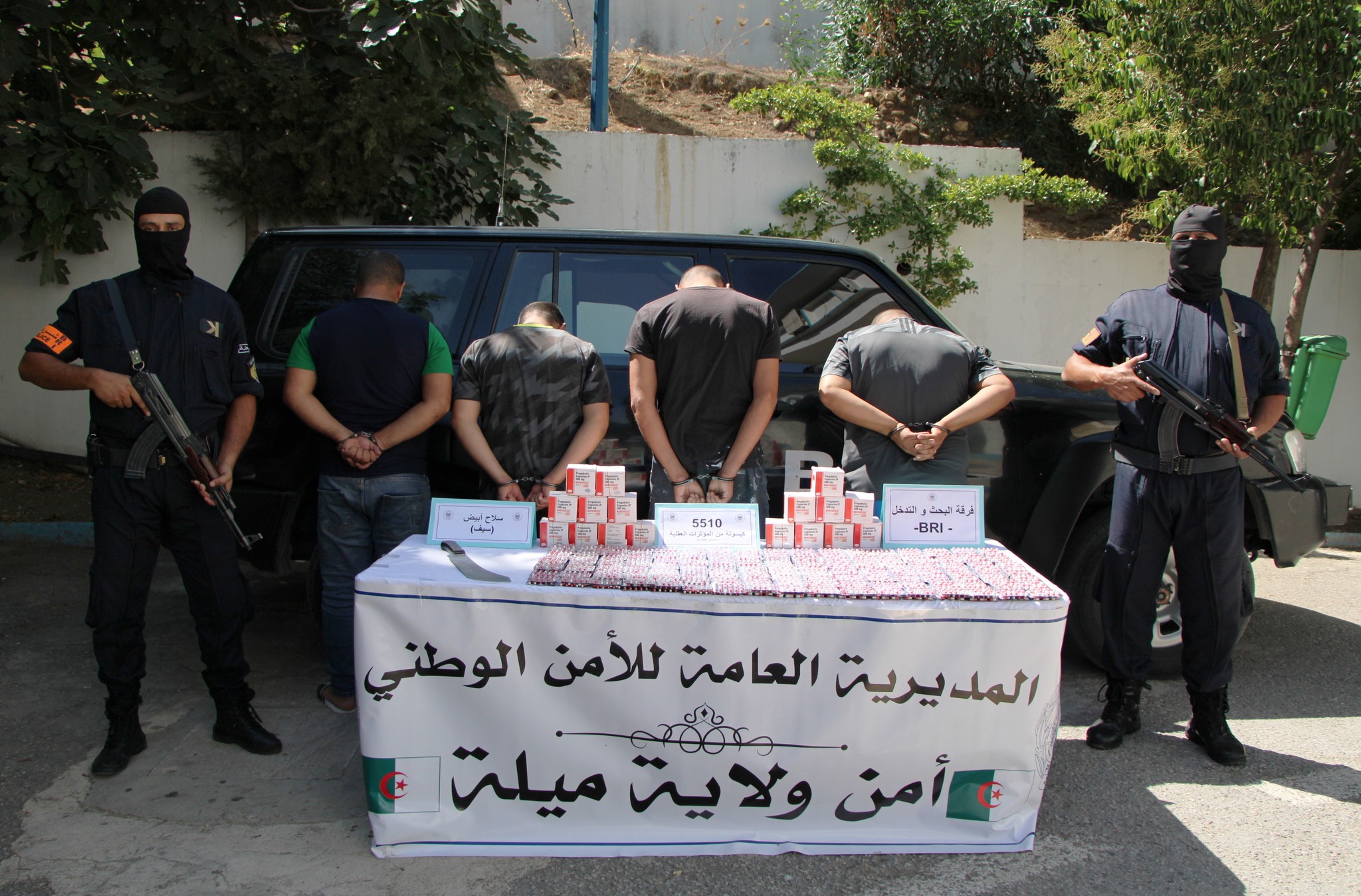العملية أسفرت عن حجز 5510 كبسولة من نوع بريغابالين 300 ملغ، إضافة إلى سيف من الحجم الكبير، فيما تم تقديم المشتبه فيهم أمام السيد وكيل الجمهورية لدى محكمة شلغوم العيد.