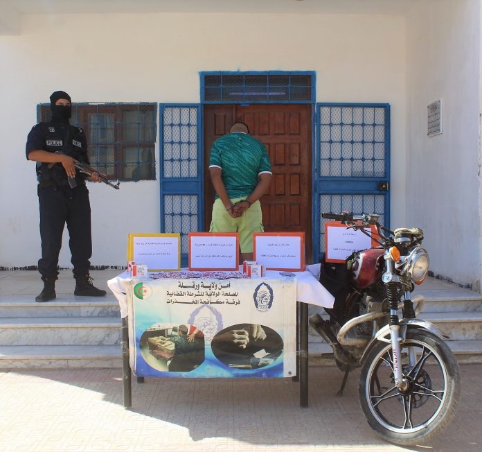 في إطار محاربة الجريمة الحضرية، خاصة ما يتعلق بالاتجار غير المشروع بالمخدرات والمؤثرات العقلية، تمكنت فرقة مكافحة الاتجار غير المشروع بالمخدرات التابعة للمصلحة الولائية للشرطة القضائية بأمن ولاية ورقلة من توقيف مروج وحجز 540 كبسولة من المؤثرات العقلية من نوع بريغابلين 300 مغ.