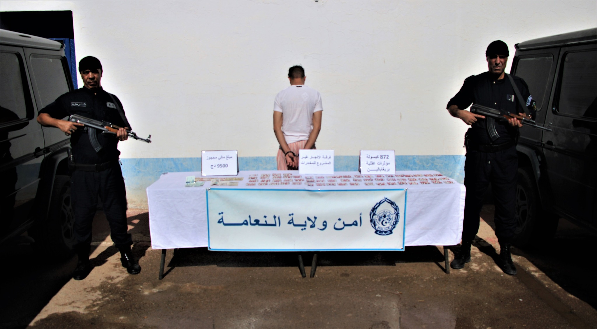 العملية أسفرت عن حجز 872 قرصاً من المؤثرات العقلية، إضافة إلى مبلغ مالي قدره 9500.00 دج يُشتبه في كونه من عائدات الترويج.