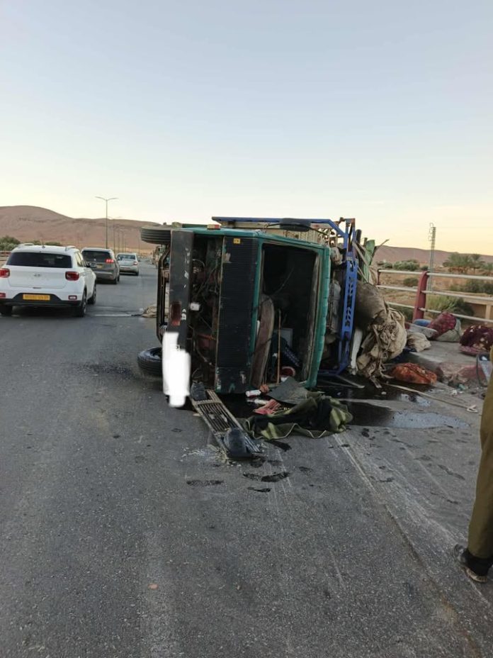 تدخلت مصالح الحماية المدنية في حدود الساعة 06:29 صباحاً إثر حادث مرور تمثل في انحراف وانقلاب شاحنة على مستوى الطريق الوطني رقم 03، ببلدية ودائرة القنطرة.